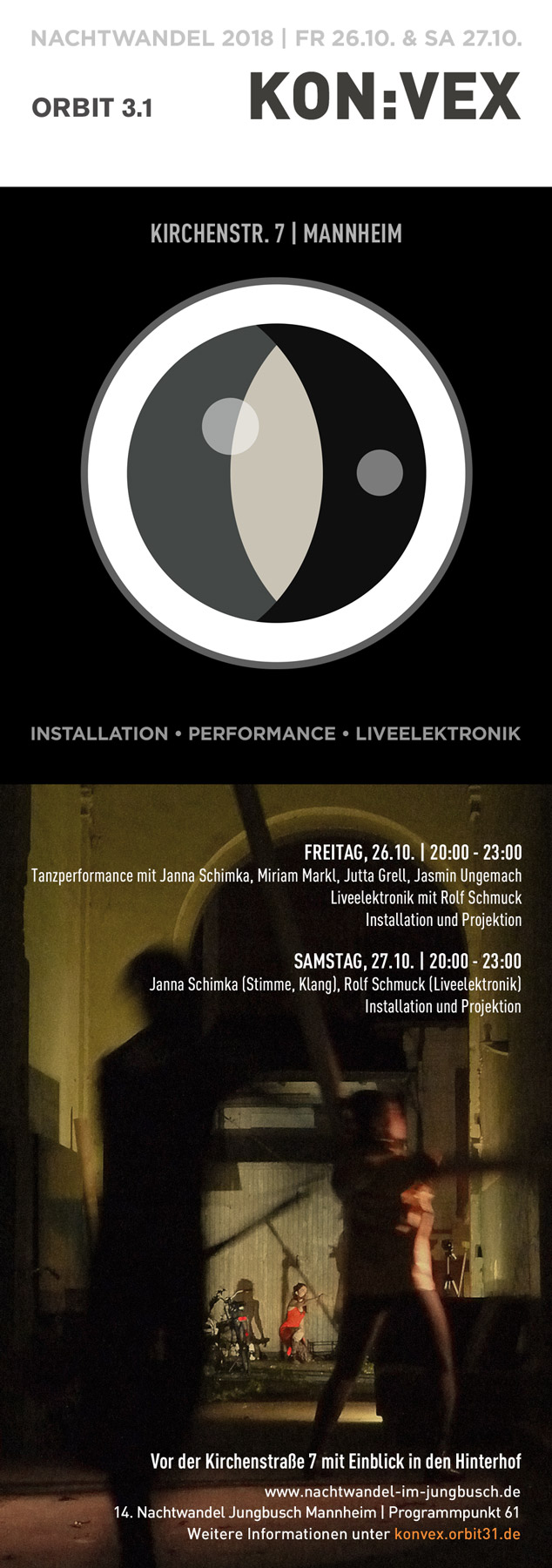 Installation und durchgehende Performance mit Tanz, Projektionen und elektronischer Livemusik.